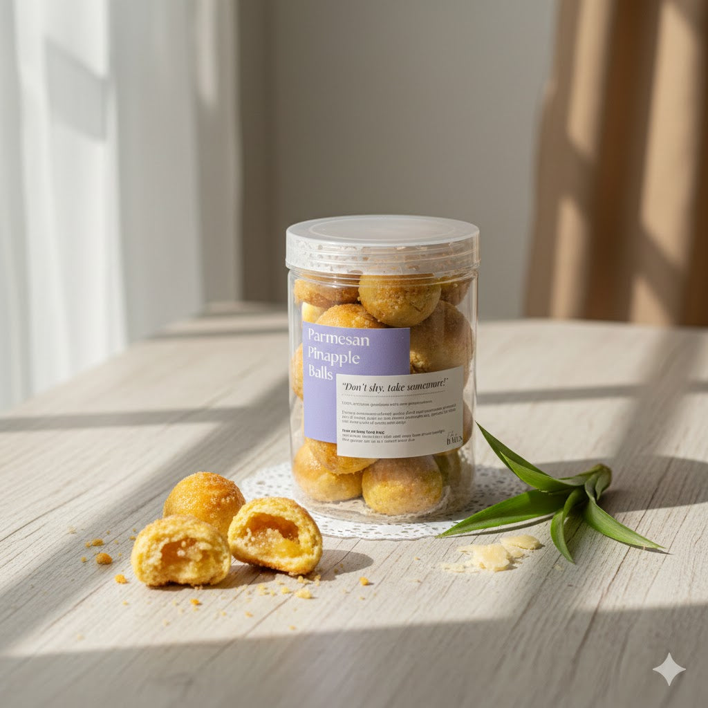 Buttery parmesan-infused pastry filled with homemade pineapple jam. A savory twist on the classic pineapple ball, perfect for those who love a mix of sweet and salty!